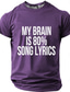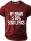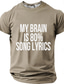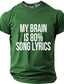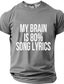 az agyam 80%-ban működik dalszöveg férfi vicces szarkasztikus rokonszenves zene humor póló grafikus kerek nyakú rövid ujjú zenekedvelő ajándék dalszerző születésnapi ajándék designer ruházat