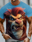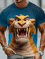 dühös vörös sörényű oroszlánfejű vad ordító szörnyeteg férfi 3D animációs utcai póló grafikus kerek nyakú rövid ujjú kék edzőtermi edzőruha ajándék oroszlán szerelmeseinek designer ruházat