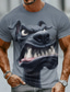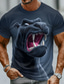 ordító fekete bulldog fejű, éles fogú férfi realisztikus állatmintás utcai póló grafikus, kerek nyakú, rövid ujjú, szürke lezser edzőtermi edzőruha ajándék kutyabarátoknak designer ruházat