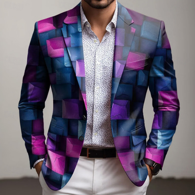 Férfi Színes Geometriai Blézer dzseki Kabát Kényelmes Légáteresztő Művészi Alkalmi Hétköznapi Napi Party estélyi viselet 3D nyomtatás Gombok Többzsebes Minden évszak Nyitott Hosszú ujj Rubin Bíbor
