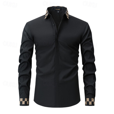 Férfi Ing Gombos póló Sima Esküvő Napi Fekete Fehér Hosszú ujj Térfogatcsökkenés Tavasz & Ősz Ruházat Kollázs