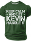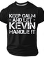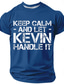 férfi „Maradj nyugodt és hagyd, hogy Kevin kezelje” póló, vicces ajándék Kevinnek, királykék, rövid ujjú, grafikus póló, kopottas, vintage stílusú, problémamegoldó ing apának, férjnek, testvérnek,