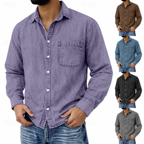 Férfi Ing Alkalmi ing Vintage ing Gombos póló 100% Cotton Acid Wash ing Medence Fekete Világoszöld Bor Sötétkék Hosszú ujj Sima Hajtóka Utcai öltözék Alkalmi Zseb Ruházat Pamut Divat Retró