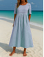 Női Maxiruha Nyári ruha Alkalmi Napi Őszi ruha Laza öltözet Csíkos Rövid ujjú Terített nyak Égszínkék Teveszín Bíbor Lóhere Ősz