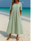 Női Maxiruha Pamuk Blend Kaftán hétköznapi ruha Alap Alkalmi Napi Vakáció Normál Sima Rövid ujjú V-alakú Fekete Fehér Bíbor Világoskék Nyár