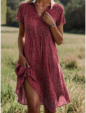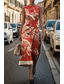 Női Midi ruha nyári ruha Rakott ruha Szabadság Alkalmi Szabadság Laza öltözet Virágos Grafika Rövid ujjú Terített nyak Rubin Lóhere Nyár