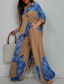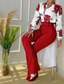 Női Ing Nadrág szettek Hosszú ujj Állógallér Grafika Kollázs Elegáns Csehország Szabadság Hétköznapi Napi Szabadtéri Medence lilásvörös Haditengerészet Nyár Laza öltözet