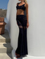 Női Selyemtop Fekete Fehér Egyszínű Kivágott Strand Úszás Nyaralás Szexi Boho Pántos Szabványos Fit S