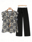 Női Atléta Nadrág szettek Széles lábszár Nadrágok Ujjatlan Terített nyak Nyomtatás Nyomtatott Divat Szabadság Hétvége Medence Fekete Bézs Nyár Normál