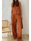 Női Blúz Nadrág szettek Ujjatlan Terített nyak Tömör szín Nyitott hátú Aktív Utcai sikk Alkalmi Hétvége Fekete Sötét tengerészkék Narancssárga Nyár Normál