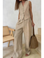 Női Blúz Nadrág szettek Ujjatlan V-alakú Tömör szín Dubbele Rij Knopen Aktív Divat Vakáció Alkalmi / Napi Fekete Narancssárga Khakizöld Nyár Normál
