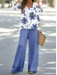 Női Blúz Széles szárú nadrág Háromnegyedes Terített nyak Virágos Zsinór Divat Utcai sikk Napi Hétköznapi Napi Fehér Tavasz & Ősz Normál