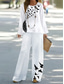 Női Póló Nadrág szettek Hosszú ujj Terített nyak Kerek Grafika Állat Cica Nyomtatott Elegáns Szabadság Divat Hétköznapi Napi Alkalmi / Napi Fehér Tavasz Normál
