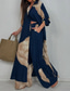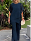 Női Nadrág szettek Rövid ujjú Terített nyak Tömör szín Többrétegű Elegáns Divat Utcai sikk Hétköznapi Napi Sötétkék Tavasz Normál