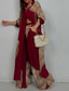 Női Nadrág szettek Hosszú ujj Terített nyak Tömör szín Fodrozott Divat Utcai sikk Napi Hétköznapi Napi Fekete Fehér Rubin Tavasz Normál