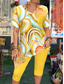 Női Pulóver Tracksuit Nadrág szettek Utcai sikk Cinched Medence Sárga Alkalmi Alkalmi / Napi Grafika Absztrakt Zsinór Nyomtatott Terített nyak S M L XL XXL