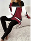 Női Póló Nadrág szettek Hosszú ujj Terített nyak Kerek Grafika Mértani Csíkos Nyomtatott Elegáns Szabadság Divat Hétköznapi Napi Alkalmi / Napi Burgundi vörös Lóhere Sötétszürke Tavasz Normál