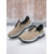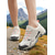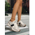 női retró fehér &szürke platformcipő - lezser, vastag apukacipő fekete kontrasztcsíkkal mindennapi utcai viseletre, városi ingázásra &városi séták