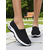női strasszokkal díszített fekete felbújós tornacipő – könnyű, csillogó, divatos sportcipő alkalmi viselethez
