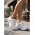 női fehér platformcipő - kényelmes, vastag talpú, elegáns cipő vastag fűzőkkel mindennapi utcai viseletre, városi ingázásra &laza városi séta