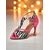 női fekete és piros profi latin tánccipők, pántos, nyitott orrú, bálteremcipő, elegáns előadásmód &gyakorlócipők salsa és tangó táncosoknak