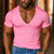 Férfi Póló Tee Top Rövid ujjú V-alakú Nyár Tömör szín Divat Dizájn Alap V-nyakú Vakáció Utca Hétköznapi Világoskék Fekete Arcpír rózsaszín Férfi felső póló