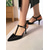 elegáns lakkozott fekete mary jane sarkú cipő - sokoldalú női irodai lábbelik, vaskos sarokkal és bokapánttal