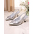 női fehér, gyöngy masnival díszített, hegyes orrú, átlátszó magassarkú cipők romantikus randevúkhoz vagy elegáns mindennapi viselethez