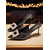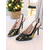 női fekete és arany színű, slingback magassarkú cipők - hegyes orrú, középmagas sarkú cipők kristályokkal díszített sarokkal éjszakai életbe, partira &klubruházat