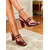 női, 1950-es évekbeli retró bordó slingback magassarkú – elegáns dupla csattal és szögletes orral, vintage ihletésű stílus hivatalos eseményekre, partikra és esti kiruccanásokra