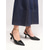 női sikkes fekete lakkbőr hegyes orrú slingback cipők - tűsarkú cipők kristálydíszítéssel mindennapi irodába, üzleti hétköznapokra &elegáns esti kiruccanások