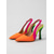 női élénk narancssárga, többszínű, slingback magassarkú cipő - stílusos, hegyes orrú, neonrózsaszín színű, magassarkú cipő &zöld kiegészítők a mindennapi munkába, városi sikkes öltözékek &nyári