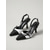 női fekete slingback magassarkú cipő - hegyes orrú, középmagas sarkú, strasszos masnival és kristályblokkos sarokkal, éjszakai életbe, partira &klubruházat