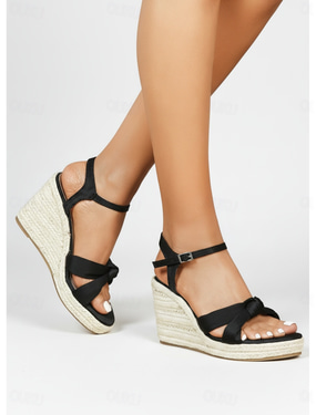női fekete espadrille éktalpú szandál - elegáns keresztpántos, csomós platformcipő bokapánttal hajóutakra, hivatalos fedélzeti vacsorákra &nyári üdülőruházat