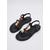 női sikkes fekete csillogó tanga szandál - kényelmes, alacsony sarkú, gyűrűs díszítéssel ellátott szandál hajós vacsorákra, jachtpartikra &nyári esti gálák