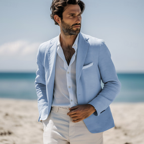 Férfi Vászonblézer Sport kabát Alkalmi / Napi Tengerparti esküvő Divat Pehelysullyú Minden évszak Pamut vászon Egyszínű Alap Egysoros két gombos Sportkabát Fehér Égszínkék Bézs
