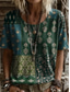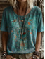 Női Póló Nyomtatott Virágos Grafika Mértani Szüret Stílusos Alkalmi Rövid ujjú Terített nyak Normál felsők Hétköznapi Napi Hétvége Fekete Arcpír rózsaszín Poros kék Barna Nyár Tavasz