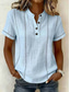 Női Póló Henley ing Tee Top Gombok Csíkos Divat Rövid ujjú Henley Normál felsők Hétköznapi Tengerpart Nyár Fehér Arcpír rózsaszín Égszínkék Nyár Tavasz