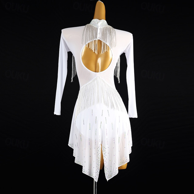 [Anyag]: Magas minőségű Spandexből készült, ez az egzotikus táncruha kényelmes és rugalmas illeszkedést biztosít, lehetővé téve a teljes mozgástartományt a teljesítmények során. Az anyag nyújthatósága mind támogatást, mind szabadságot nyújt, így ideális bonyolult tánc rutinokhoz. [Illeszkedés]: Olyan előnyös szabású bodice-t terveztek, amely enyhén bővülő aszimmetrikus szoknyába folyik bele, ez a ruha olyan sziluettet kínál, amely kiemeli a táncos mozgását. A hosszú ujjú kialakítás elegáns érintést ad, míg a magas nyakvonal letisztult és kifinomult megjelenést kölcsönöz. [Tervezési Jellemzők]: Ez a lenyűgöző ruha bonyolult bojt és strasszkő díszítésekkel rendelkezik. A nyakpántos kivágás csillogó strasszkövekkel van díszítve, amelyek szépen megcsillannak a fényben, míg a mellbőségtől a derékig terjedő francia részlet mozgás közben lenyűgöző látványhatásokat teremt. A szoknya aszimmetrikus hemje diszkrét strasszkövekkel van díszítve, extra eleganciát adva az overall dizájnhoz. [Alkalmak]: Tökéletes latin és társastánc előadásokhoz, ez a ruha más egzotikus tánc eseményekhez is alkalmas. Elegáns és stílusos dizájnja miatt nagyszerű választás színpadi előadásokhoz, valamint divatos napi viseletekhez, ahol szeretnél feltűnni. [Méret]: S és XXL közötti méretekben kapható, ez a ruha különböző testtípusokhoz illeszkedik, biztosítva, hogy minden táncos megtalálja a tökéletes illeszkedést a kényelem és a stílus érdekében.