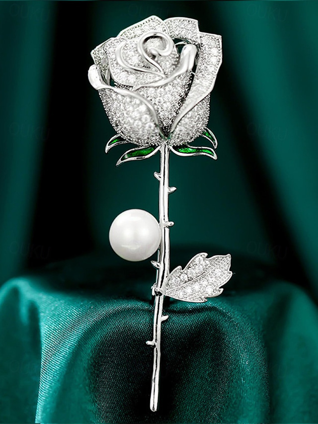 elegáns rózsavirág bross gyöngyökkel – strasszokkal kirakott vintage tű nőknek, ideális anyák napi ajándéknak, hivatalos eseményeknek és blézernek