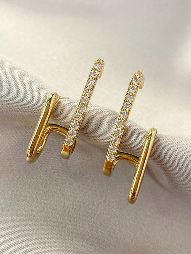 [Anyag] Magas minőségű arany színű ötvözetből készült, ezek a fülbevalók luxus és fényes megjelenést biztosítanak. Az arany bevonat gyönyörűen párosul a csillogó strasszokkal, tartósságot és eleganciát kínálva. [Silhuett/Forma] Kortárs geometriai karika tervezésével ezek a fülbevalók modern csavart adnak a klasszikus stílushoz. A közepes méretű karikák elég merészek ahhoz, hogy feltűnőek legyenek, mégis diszkréten elegánsak, így sokoldalú viseletet biztosítanak. [Tervezési Főbb Jellemzők] A fülbevalókat strassz díszítések ékesítik, amelyek egy vonzó érintést adnak. Geometrikus formájuk nemcsak egyedi vizuális vonzerőt biztosít, hanem egy modern eleganciát is tükröz, amely fokozza bármilyen megjelenést. [Alkalmak] Tökéletesek esküvőkhez, bulikhoz, formális eseményekhez és bármilyen különleges alkalomhoz, ahol szeretnél egy kis csillogást és kifinomultságot hozzáadni. Ezek a fülbevalók könnyedén átmennek a napi és esti viseletbe, így alkalmasak mind a hétköznapi, mind a formális megjelenéshez. [Méret Megjegyzés] Közepes méretben tervezve, hogy merész hatást gyakoroljanak anélkül, hogy túlzóak lennének, ezek a fülbevalók könnyűek és kényelmesek, biztos záródással rendelkeznek, hogy a helyükön maradjanak. Nők számára alkalmasak, akik elegáns és divatos kiegészítőket keresnek.
