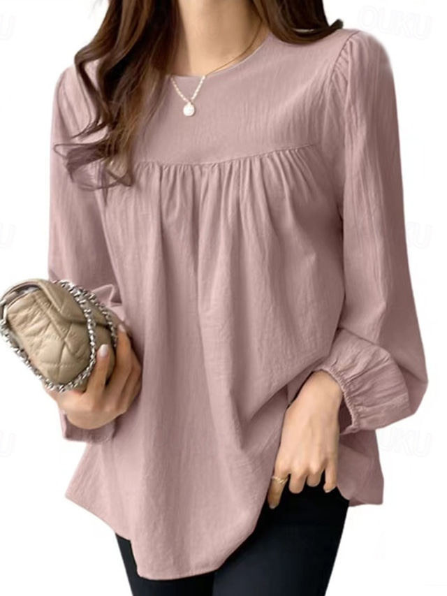 Női Ing Pamut vászon ing 100% pamuk Hosszú ujj Terített nyak Fehér Arcpír rózsaszín Sötétkék Tavasz & Ősz
