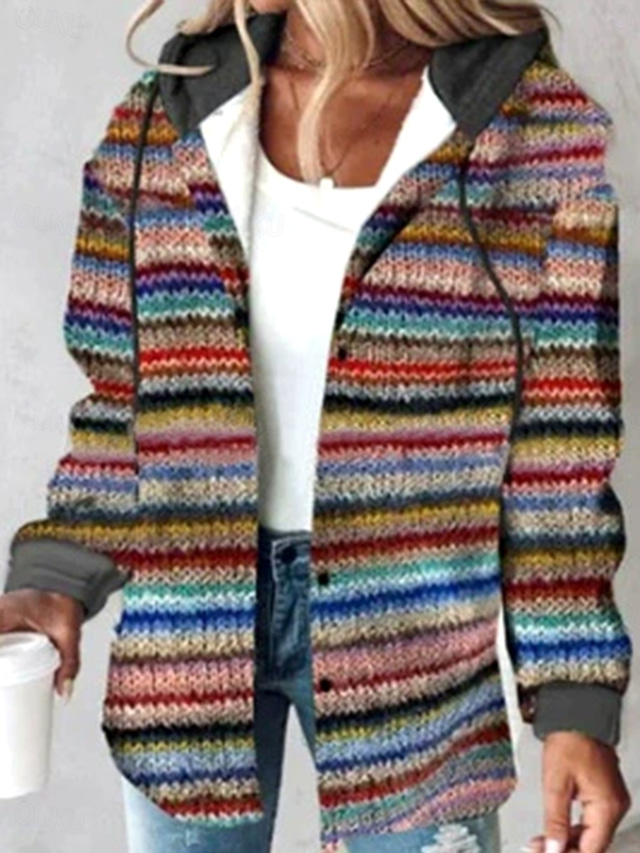 Női Pulóver Hoodie pulóver Nyomtatott Grafika Mértani Csíkos Alkalmi Boho Hosszú ujj Kapucni Normál felsők Hétköznapi Utca Szabadság Gesztenyebarna Barna Szürke Ősz Tél