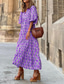 Per donna Abito Lungo Maxi Abito Abito Stampato Moda Manica a Lanterna Vacanza Ferie Uscire Vestibilità regolare Fiore Mezza Manica Scollo a V Viola Arancione Rosso rosa Estate