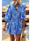 Per donna Mini Abito Abito Stampato Moda Quotidiano Ferie Data Vestibilità regolare Fiore Manica 3/4 Scollo a V Blu Estate