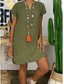 Per donna Abito Midi Abito a Tubino Abiti in cotone e lino Abito Estivo Moda Casual Quotidiano Vestibilità regolare Tinta unica Manica Corta Scollo a V Verde chiaro Verde scuro Arancione Grigio scuro