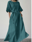 Per donna Abito Midi Misto lino Abito a Tubino Abiti in cotone e lino Abito in lino Essenziale Casual Quotidiano Vacanza Vestibilità regolare Semplice Manica 3/4 Girocollo Nero Vino Cachi Grigio