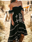 Per donna Mini Abito Abito nero Abito da Cocktail Abito Formale Abito messicano Classico Boho Quotidiano Vestibilità comoda Floreale Manica Lunga Girocollo Nero Estate Primavera