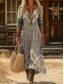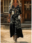 Per donna Vestito maxi Abito casual Vestito a caftano Abito boho Informale Giornaliero Standard Fantasia geometrica Manica a 3/4 Collo dentellato Nero Primavera Autunno