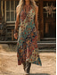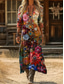 Per donna Abito Midi Abito Boho Abito Vintage Vestito Casual Vintage fluente Vestibilità regolare Boho Floreale Grafico Senza Maniche Scollo a V Rosso Viola Arancione Estate Primavera